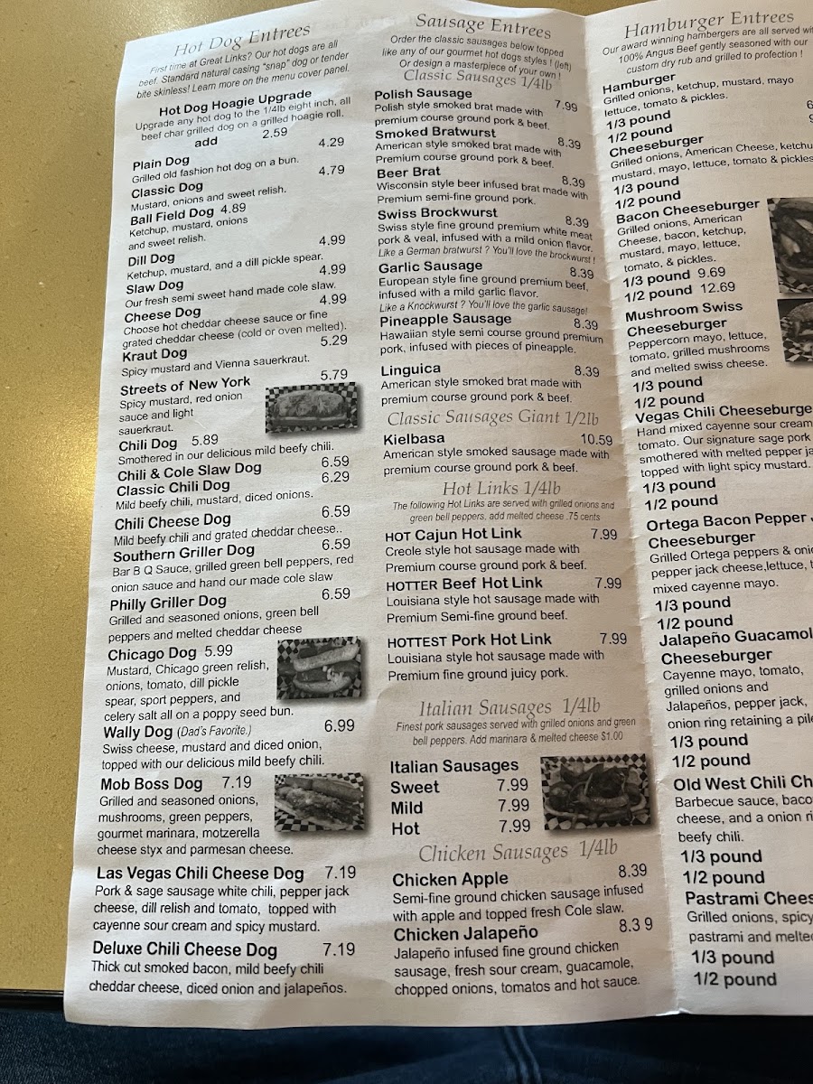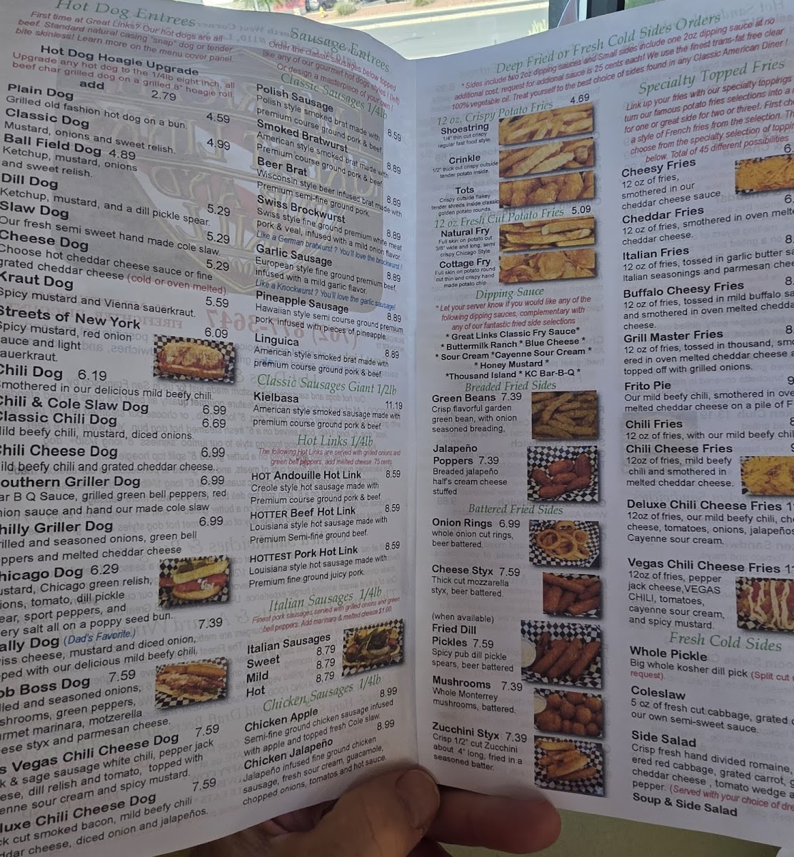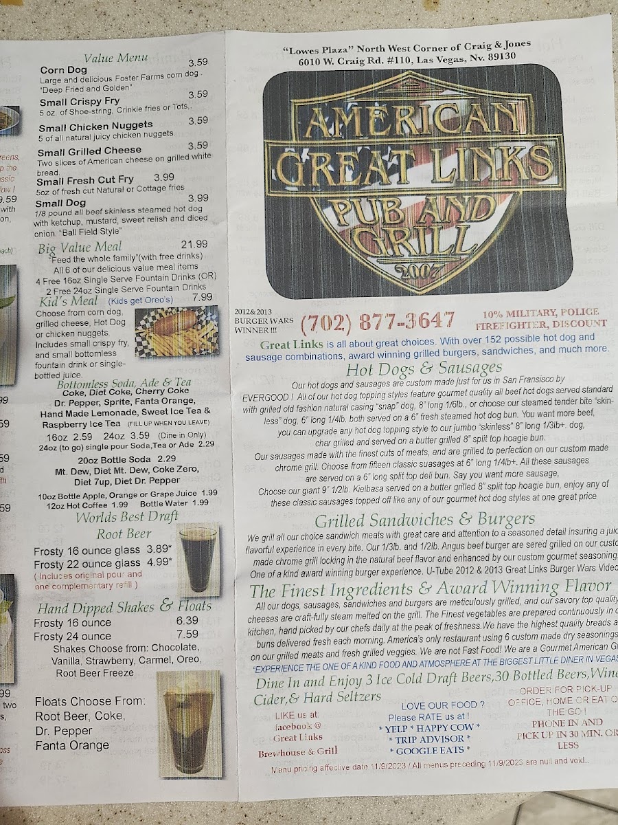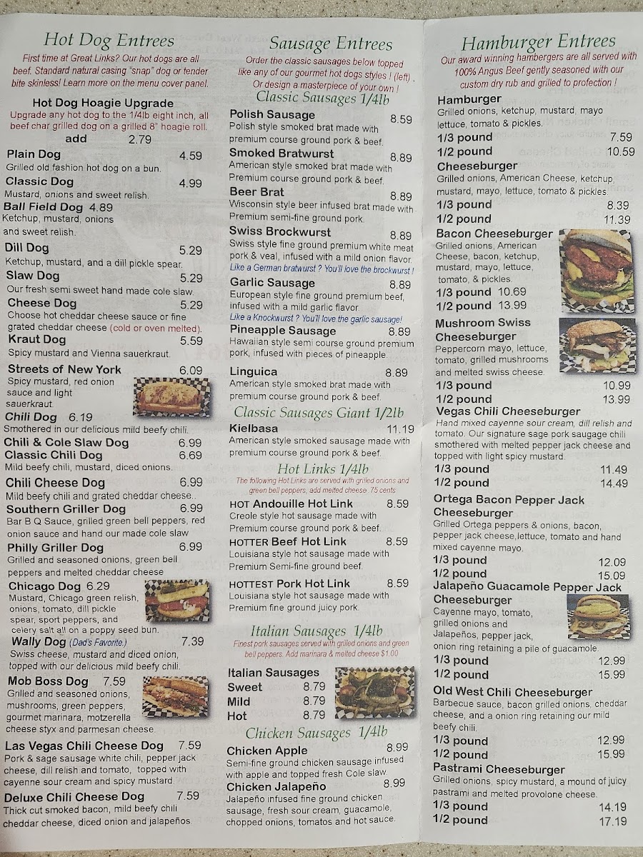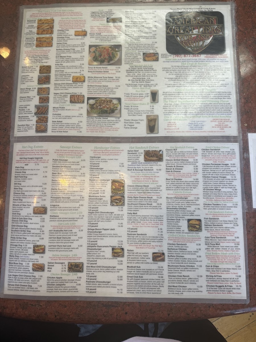 The menu at Great Links Brewhouse & Grill offers a straightforward and satisfying selection of classic American diner and fast food favorites, with an emphasis on hot dogs, sausages, and hearty sandwiches. The offerings feel casual and inviting, making them perfect for a quick lunch, an easy dinner, or a relaxed bite while catching a game on the restaurant’s TVs.