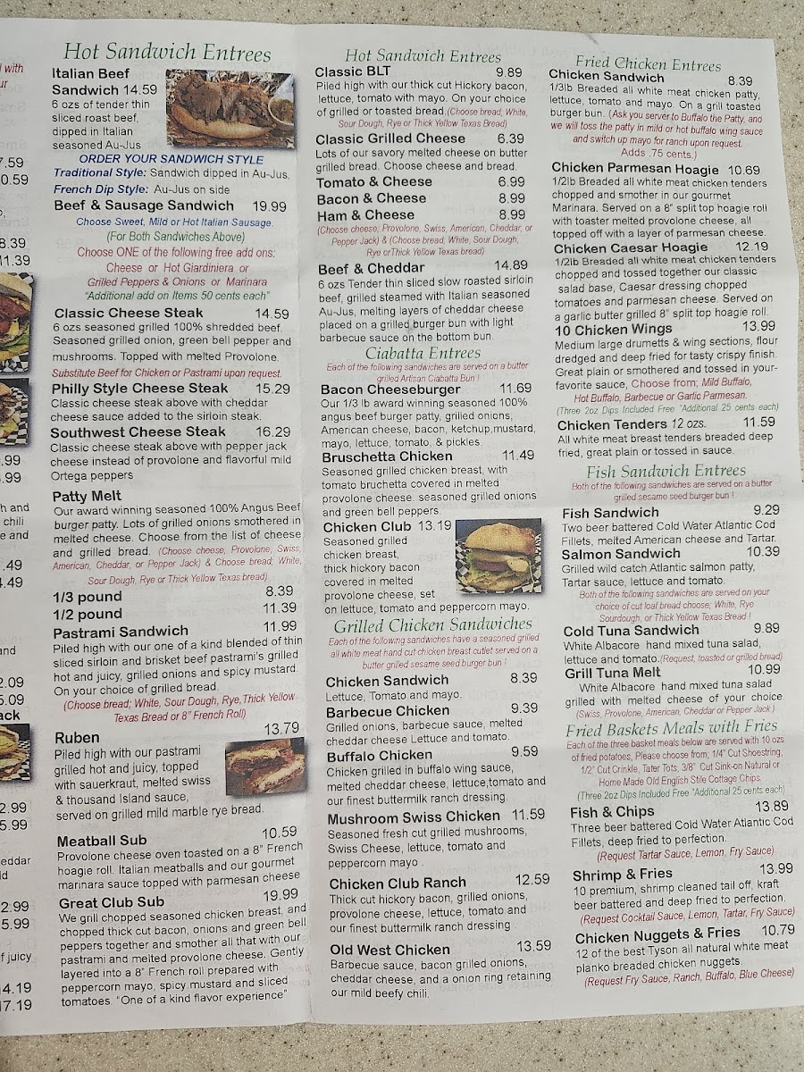 This straightforward approach to familiar flavors fits the casual, no-frills atmosphere where guests can relax at the counter or grab a table, enjoying food made fresh and served with friendly, attentive care. Whether it’s a quick stop during the day or an easy evening out, the menu supports approachable, satisfying comfort food moments.